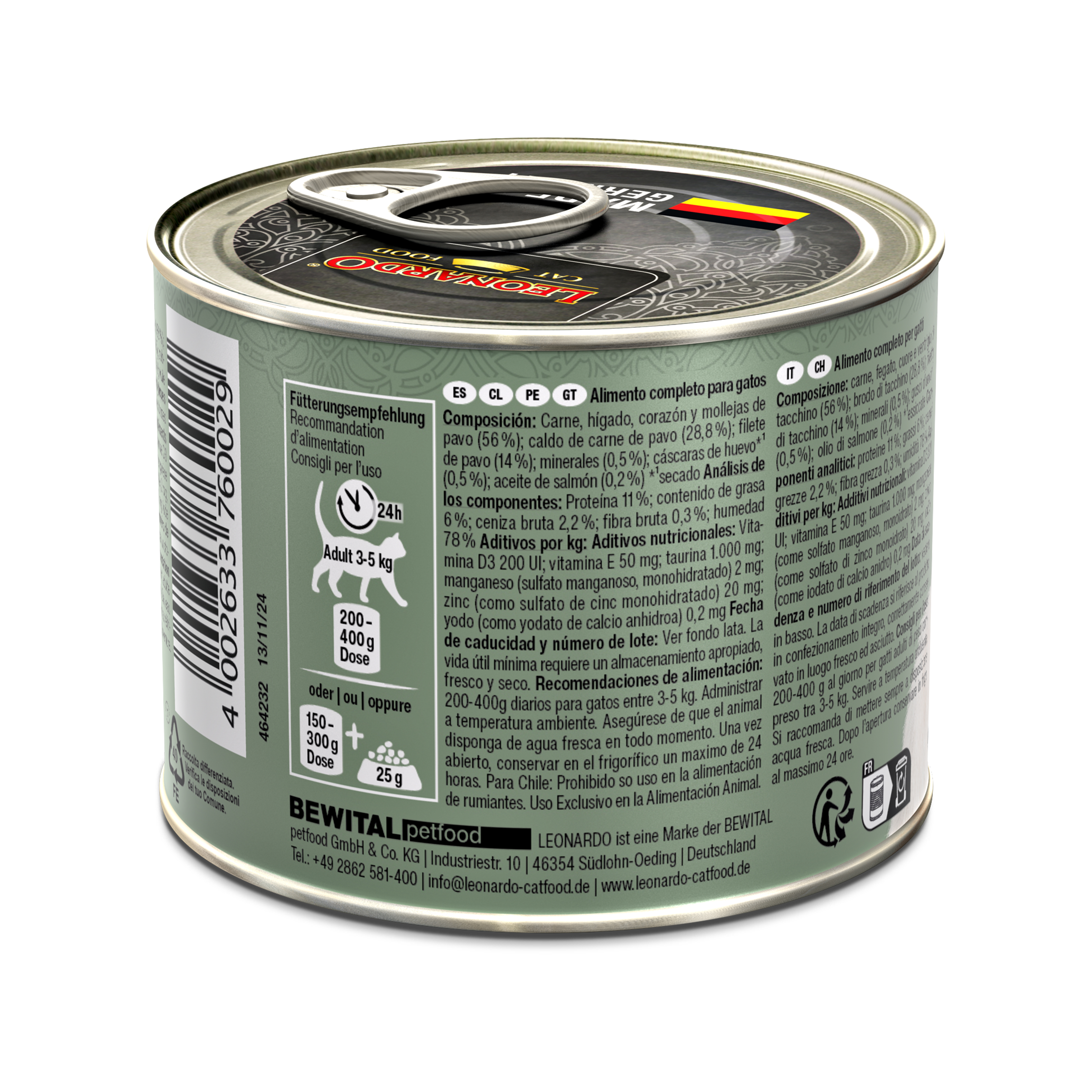 Wie alle anderen Sorten von Leonardo wird auch dieses komplett inhaliert. Warum Leonardo nur bei 4 Sorten (Geflügel, Seefisch, Ente und Rind) 800g Dosen anbietet, ist unverständlich, da es sehr viele Mehrkatzenkaushalte gibt, die sich über größere und dadurch preiswertere Dosen freuen würden. Ansonsten kann ich im Auftrag meiner Katzen Leonardo nur wärmstens empfehlen