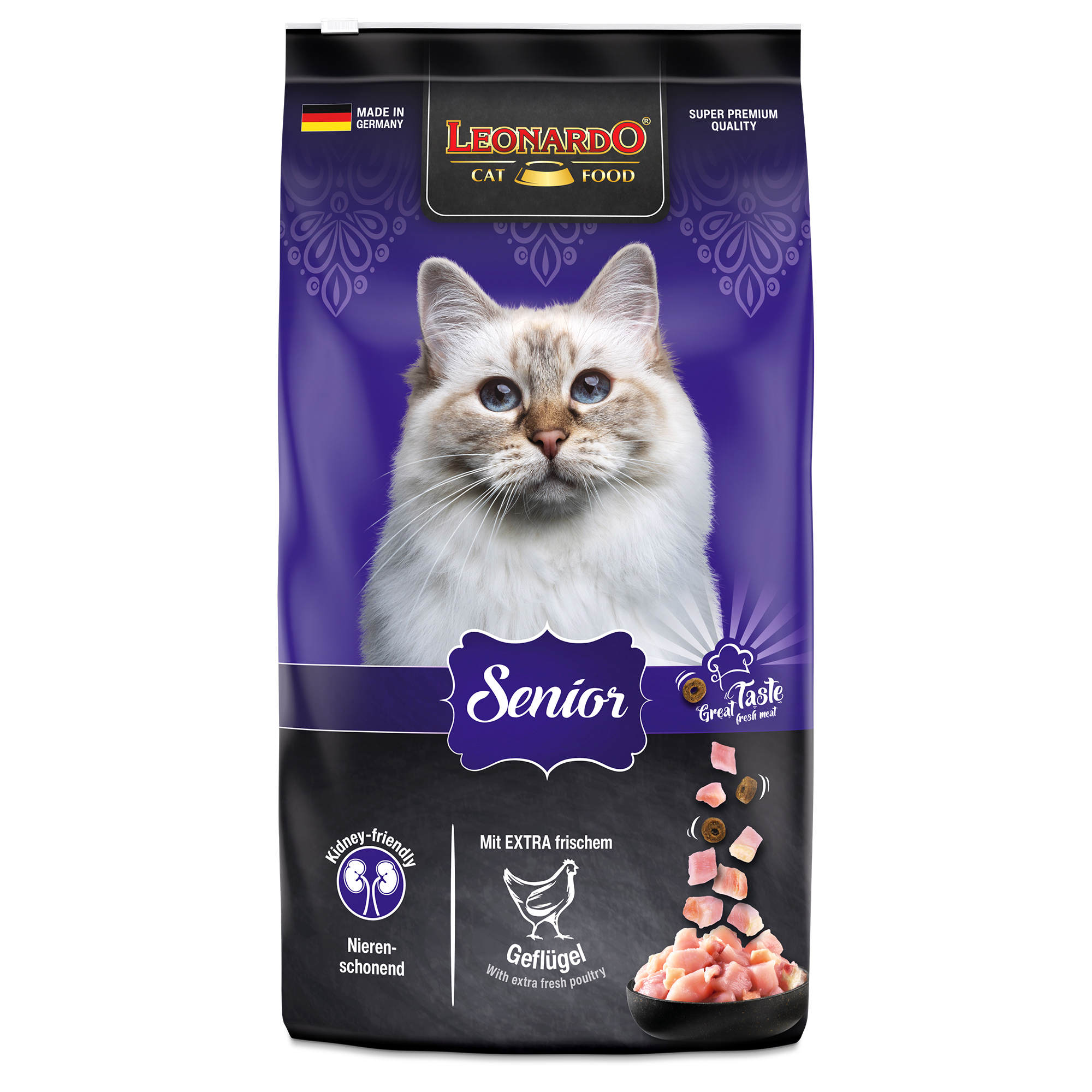 Meinem 14 Jahre alten Kater schmeckt und bekommt das Futter sehr gut. Die Zusammensetzung ist gut auf die Bedürfnisse von Senioren abgestimmt. Die Kroketten haben eine gute Größe. Wichtig auch, dass Getreide, Zucker und die sonst vielfach enthaltenen, unnützen Zusatzstoffe nicht enthalten sind. Wir können es nur empfehlen und bleiben dabei.
